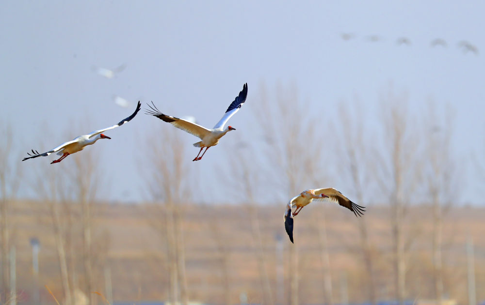 2023年3月15日,在辽宁省法库獾子洞国家湿地公园拍摄的白鹤。新华社记者 杨青 摄