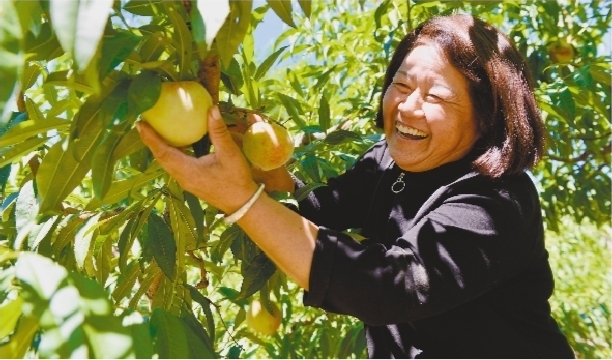 金秋时节,阜新蒙古族自治县国华乡两家子村韩永恩家的104亩果园里,成熟的果实挂满枝头。1987年,韩永恩一家进山开垦荒山种植果树,年产水果5万公斤以上,近年来,平均每年水果销售纯收入20多万元。国华乡森林覆盖率55%以上,果业发展有30多年的历史,现有果树面积1万多亩,各类水果年总产量4000万公斤以上,享有阜新市“果树之乡”的美誉,高质量的果蔬产品,促进了农业增效、农民增收。图为果农正在采摘水果。