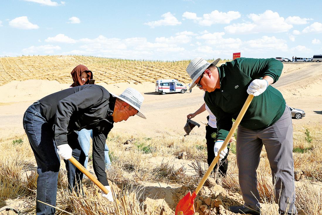 在图哈线沙地综合治理区,抚摸着平茬后茁壮生长的黄柳,来自乌兹别克斯坦的诺维斯基·吉诺维动情地说:“这种植物我的祖国也有,我看到很亲切。它在中国的沙地长得好,在乌兹别克斯坦或许也能防沙,感谢中国给了我们实地学习的机会。”