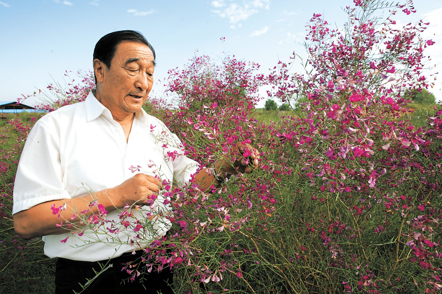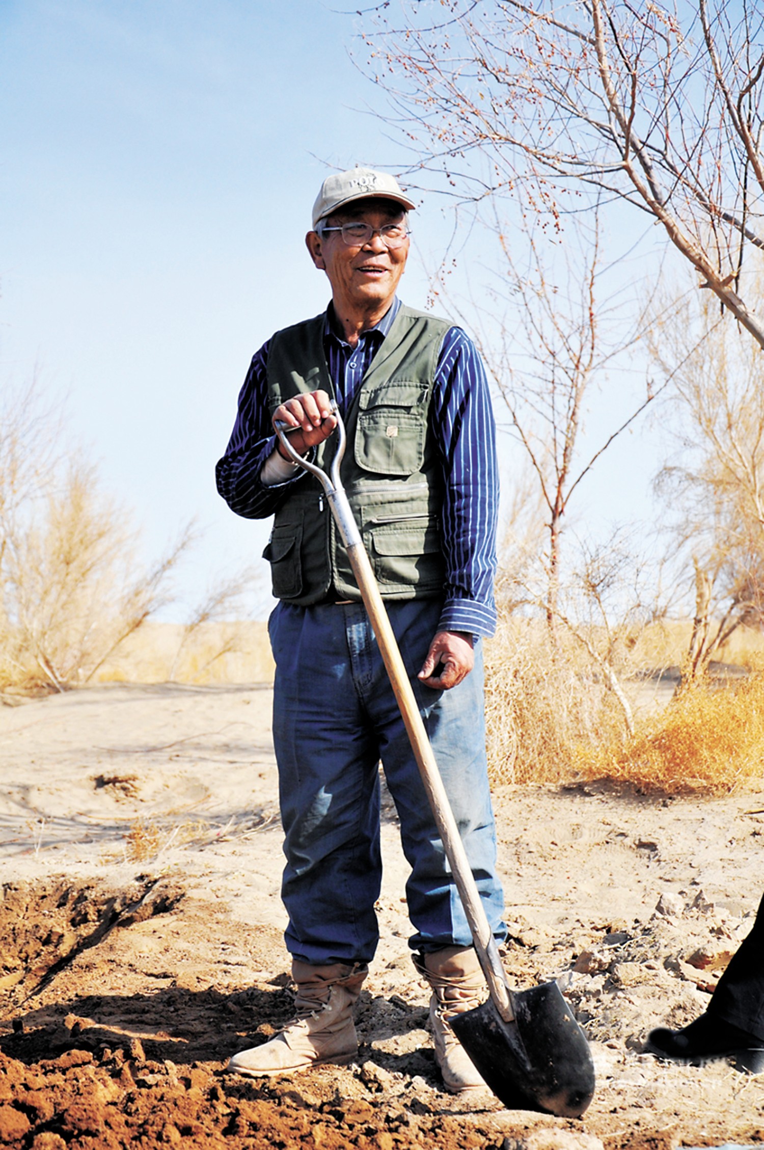 他满头白发,皮肤粗黑,双手布满老茧,与普通农牧民没什么两样,可就是这位老人,克服常人难以想象的困难,10多年坚守黑城脚下,为家乡的生态建设增添了一抹宝贵的绿色。他被誉为“大漠胡杨”“沙漠愚公”。